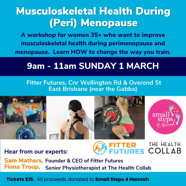 Join us for a 2 hour workshop on Sunday 1st March (9am - 11am) at Fitter Futures, East Brisbane where you can learn from Fiona Troup (Senior Physiotherapist) and Sam Mathers (CEO & Founder of Fitter Futures).